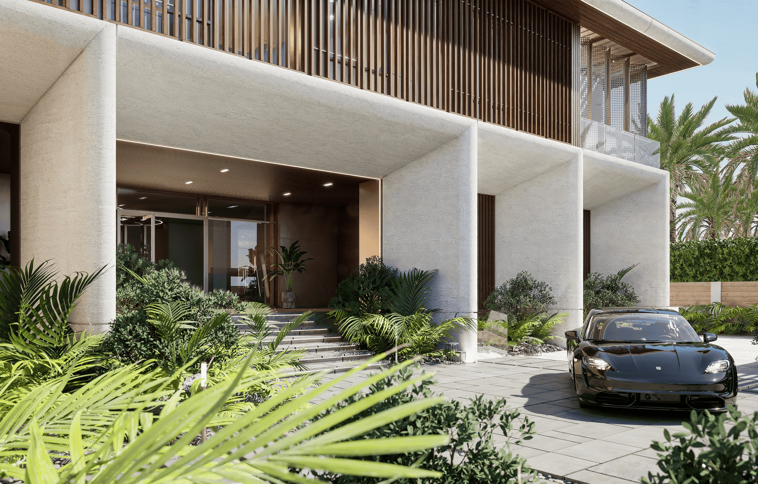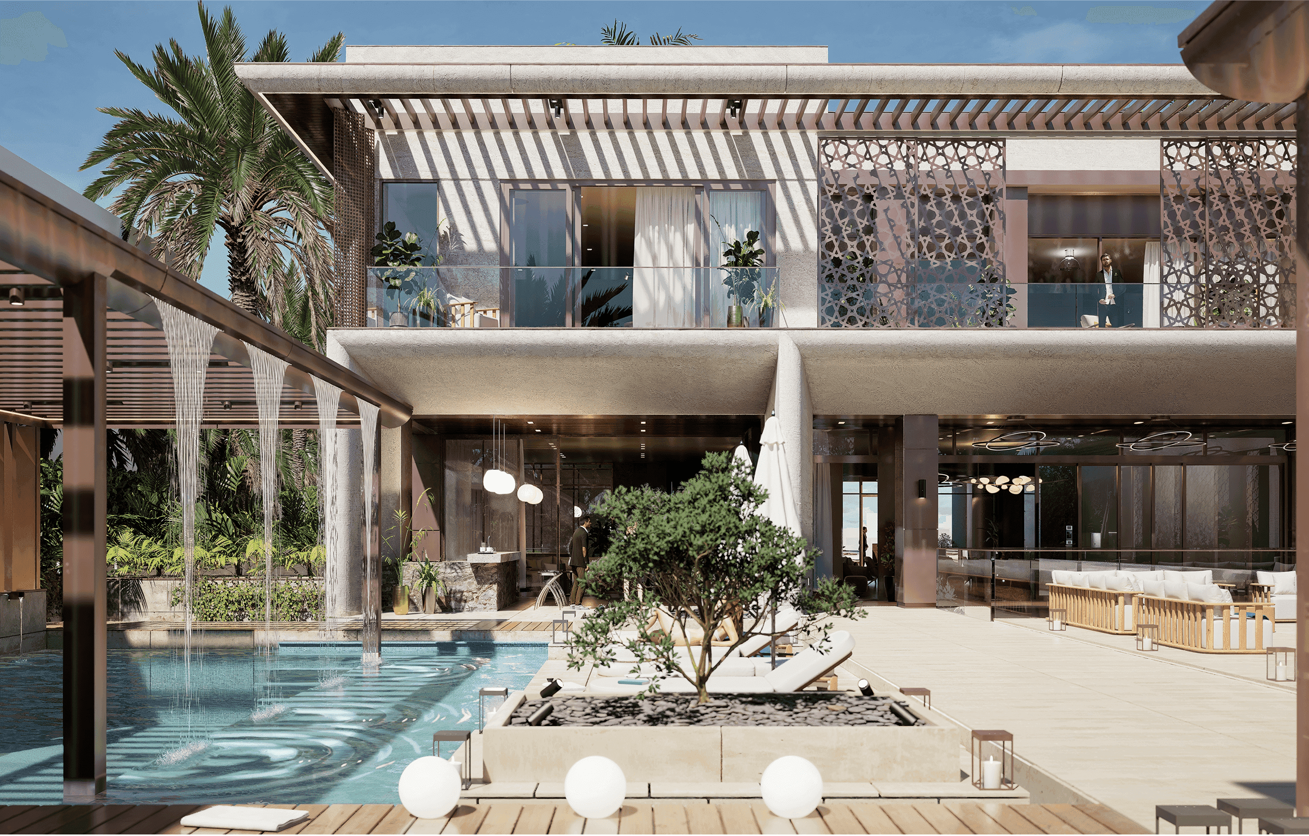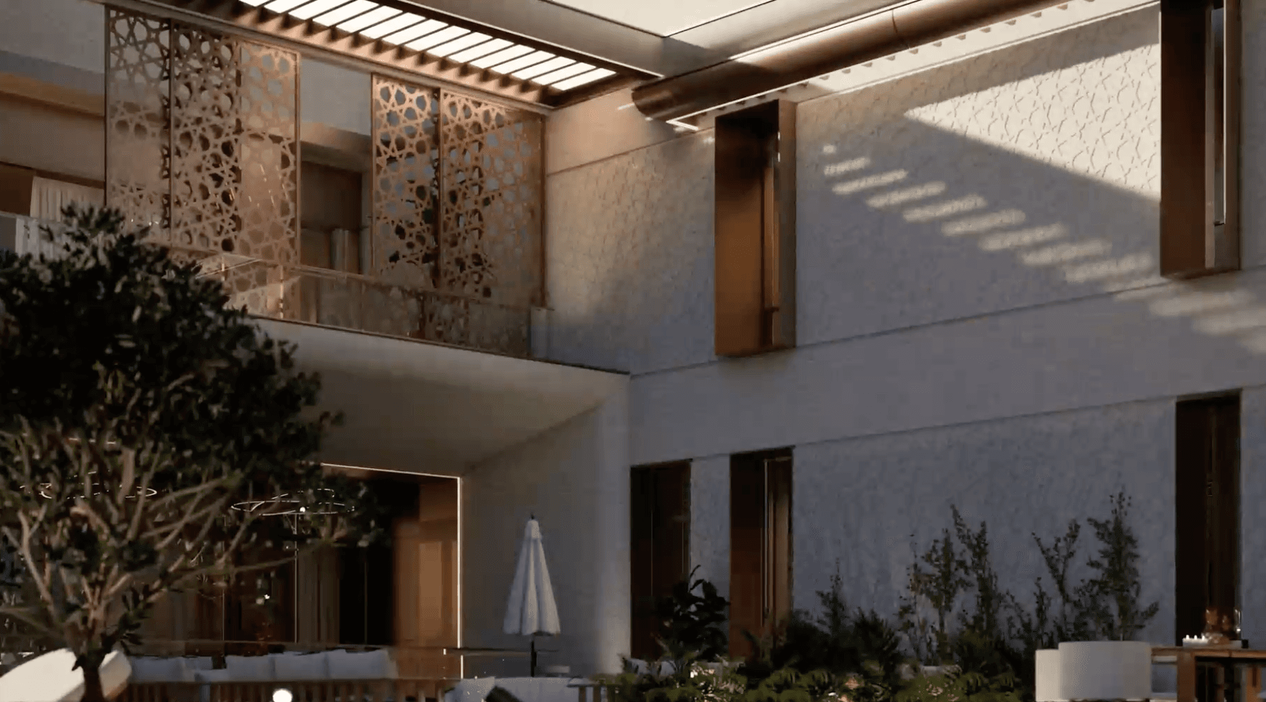 Ayla is a thoughtfully renovated villa in Emirates Hills, transformed into a modern multigenerational sanctuary that honours its heritage while embracing contemporary living. Defined by clean lines, expansive glazing, and a refined palette of travertine, timber, bamboo composites, and white façades, the design balances sophistication with natural warmth, highlighted by a distinctive concrete-finned entrance. Inside, timeless materials, universal design principles, and fluid spatial planning support accessibility, social connection, and privacy, while reimagined outdoor spaces with a contemporary pool, pergolas, and lush gardens enhance indoor–outdoor living. Anchored by sustainable strategies including solar panels and rainwater harvesting, Ayla is a serene, future-ready home designed to be cherished for generations.