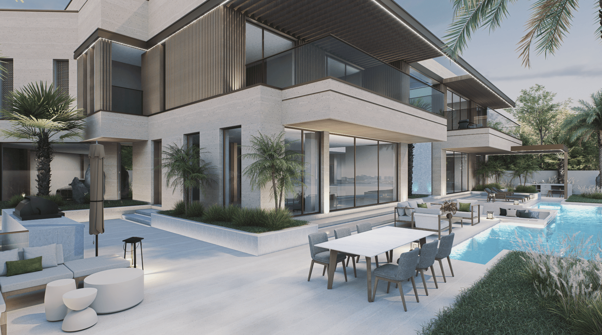 Rooted in the principles of precision engineering and performance, this Palm Jumeirah villa was transformed into a refined modern sanctuary for a professional race car driver. Sleek contemporary architecture, expansive glazing, and high-quality materials echo the aerodynamic language of motorsport, while fluid, open interiors balance minimalism with luxury. A gallery-style garage celebrates the client’s car collection as functional art, complemented by smart home technology throughout. Infinity pools, a roof terrace with a floating sky bridge, and tailored outdoor entertainment spaces complete a residence that seamlessly fuses sophistication, innovation, and the dynamic spirit of racing.