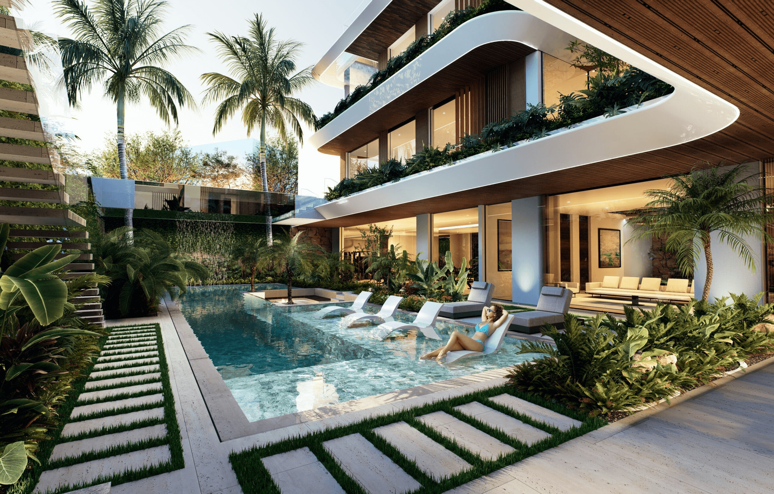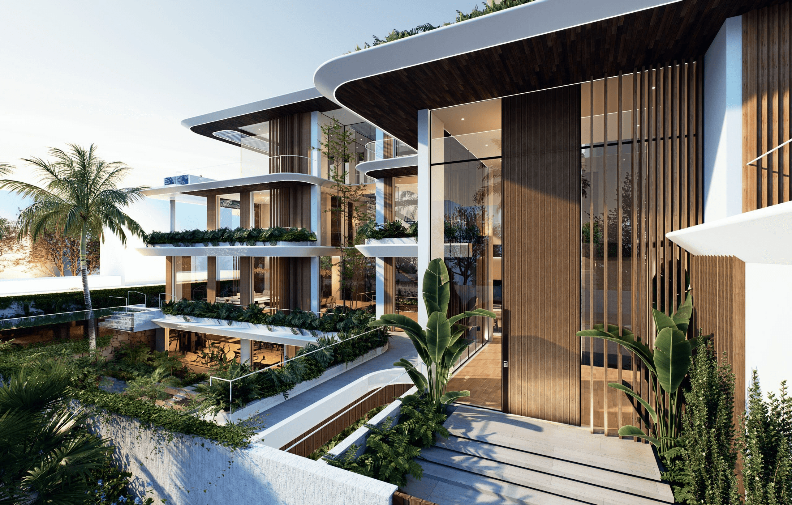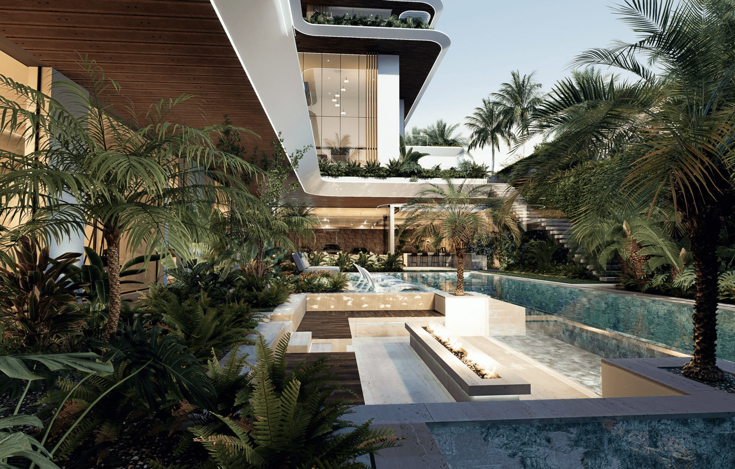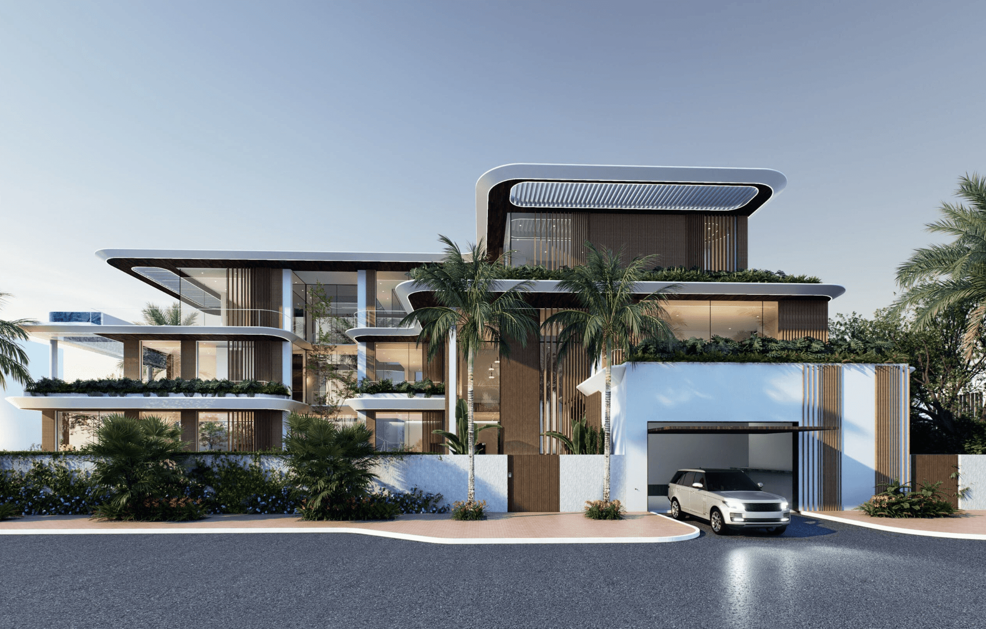 Mila is a four-level family residence conceived around biophilic principles, wellness, and a strong connection to nature, seamlessly balancing everyday family living with the ability to host large gatherings. Defined by a triple-height glass entrance, a 7.1-meter teak sky door, and yacht-inspired curves with light-enhancing flared edges, the home maximises natural light while providing climatic comfort through timber louvres and deep overhangs. Internally, open and inviting living spaces are oriented toward views of the Burj Al Arab, complemented by a penthouse master suite and planted balconies. Outdoor areas, centred around a striking cantilevered glass-bottom pool, combine lush gardens and functional terraces, creating a refined sanctuary that blends aesthetics, comfort, and functionality within the desert environment.