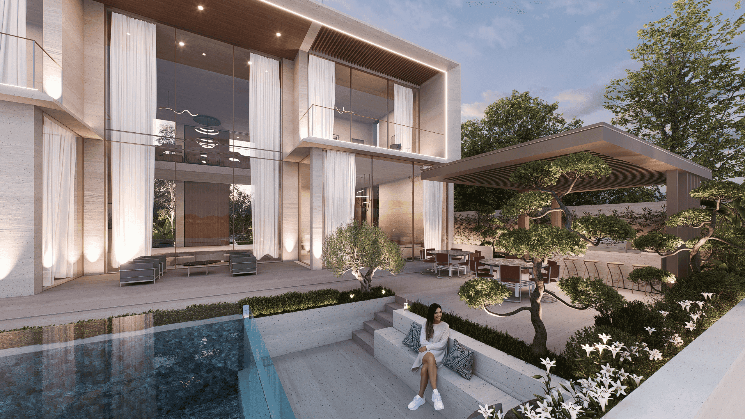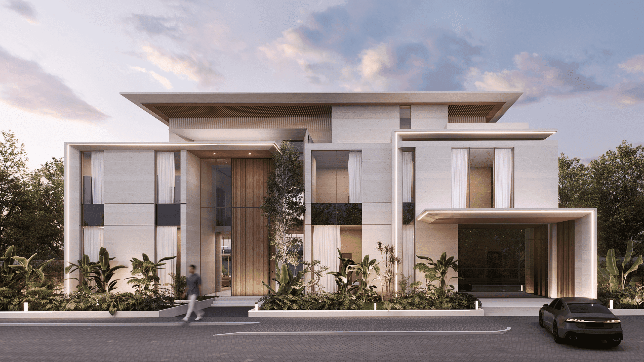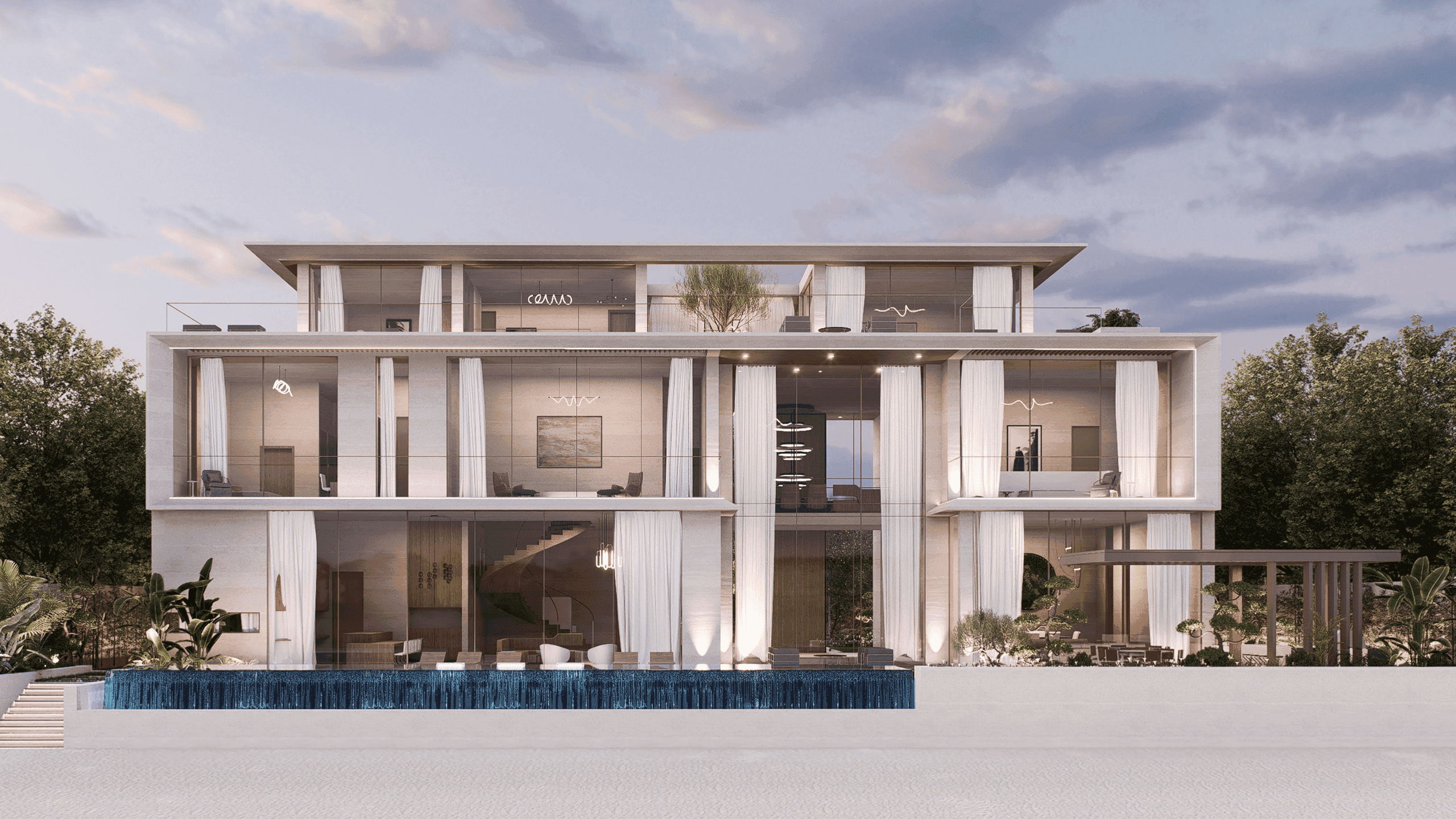 Breakwater is a thoughtfully renovated, developer-owned villa transformed into a contemporary luxury residence tailored to today’s market. Defined by a travertine façade with light timber accents and a dramatic double-height entrance, the home offers panoramic sea views, seamless indoor–outdoor living, and an expansive rear terrace with an infinity pool, sunken seating, fire pit, and outdoor cinema. Complemented by refined interiors, private balconies, dedicated work and leisure spaces, and a versatile rooftop, Breakwater combines efficient planning with striking aesthetics to stand among Palm Jumeirah’s most exceptional properties.
